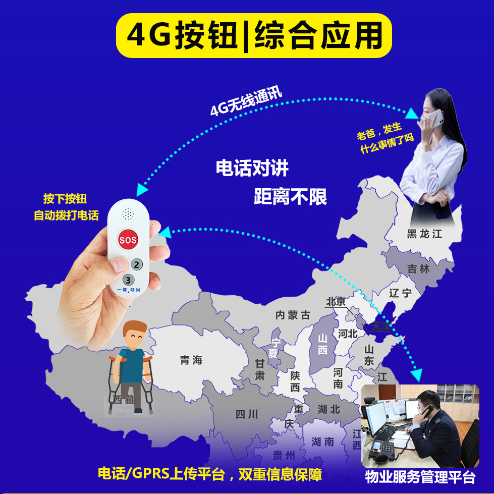 更安全:采用GSM+GPRS无线网络通讯方式,比传统的无线紧急报警按钮更稳定,更可靠。
