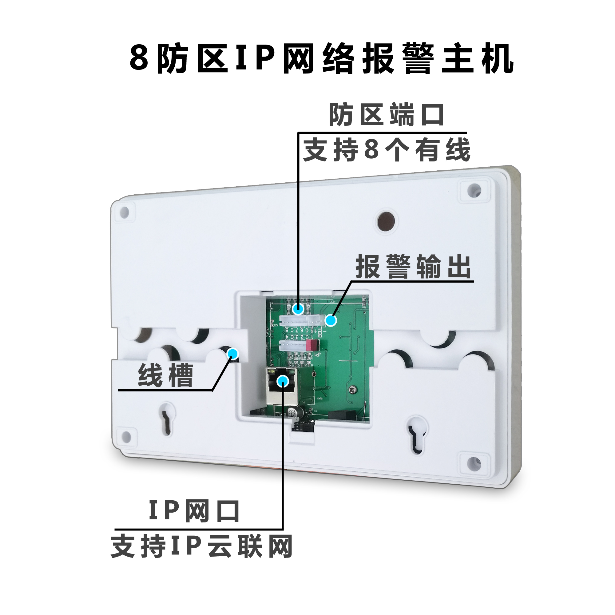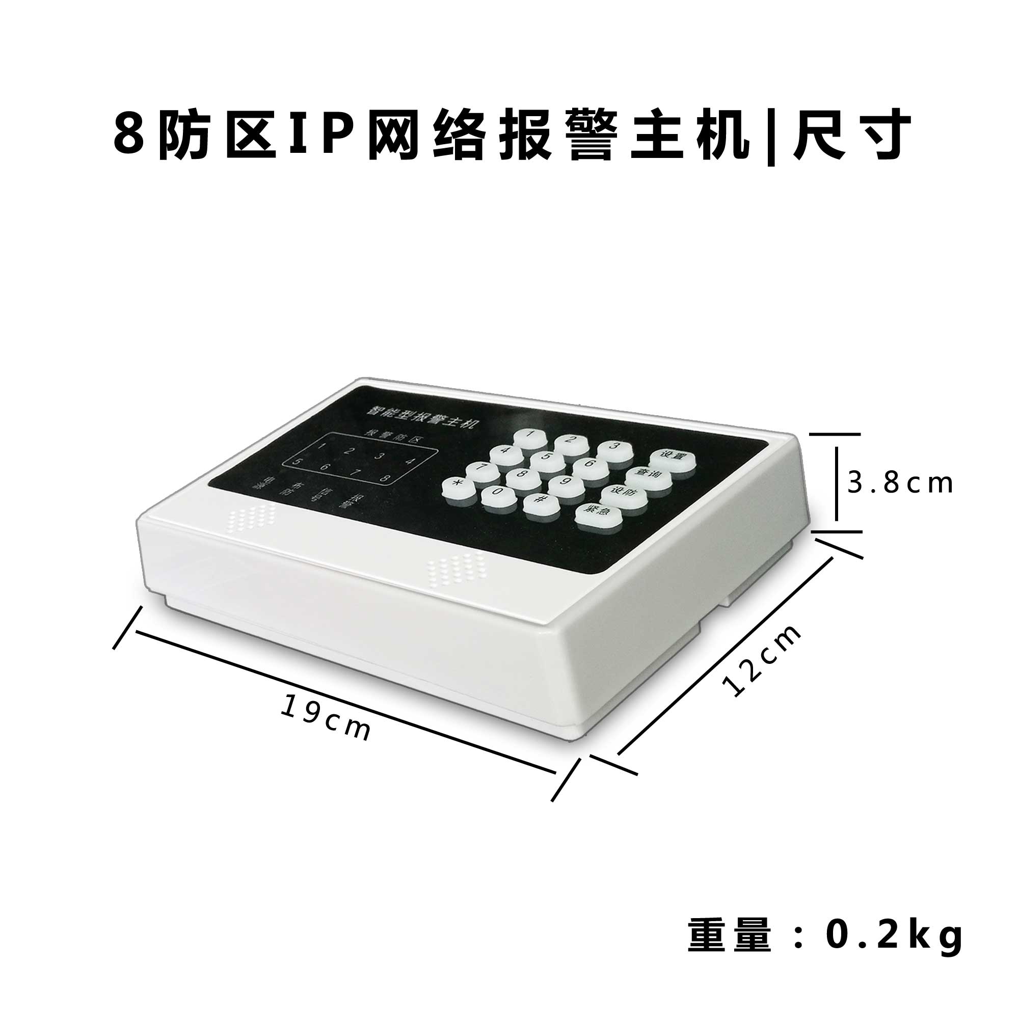 l 8防区IP网络报警主机采用主机键盘一体式设计,外观小巧,安装方便,调试简单。