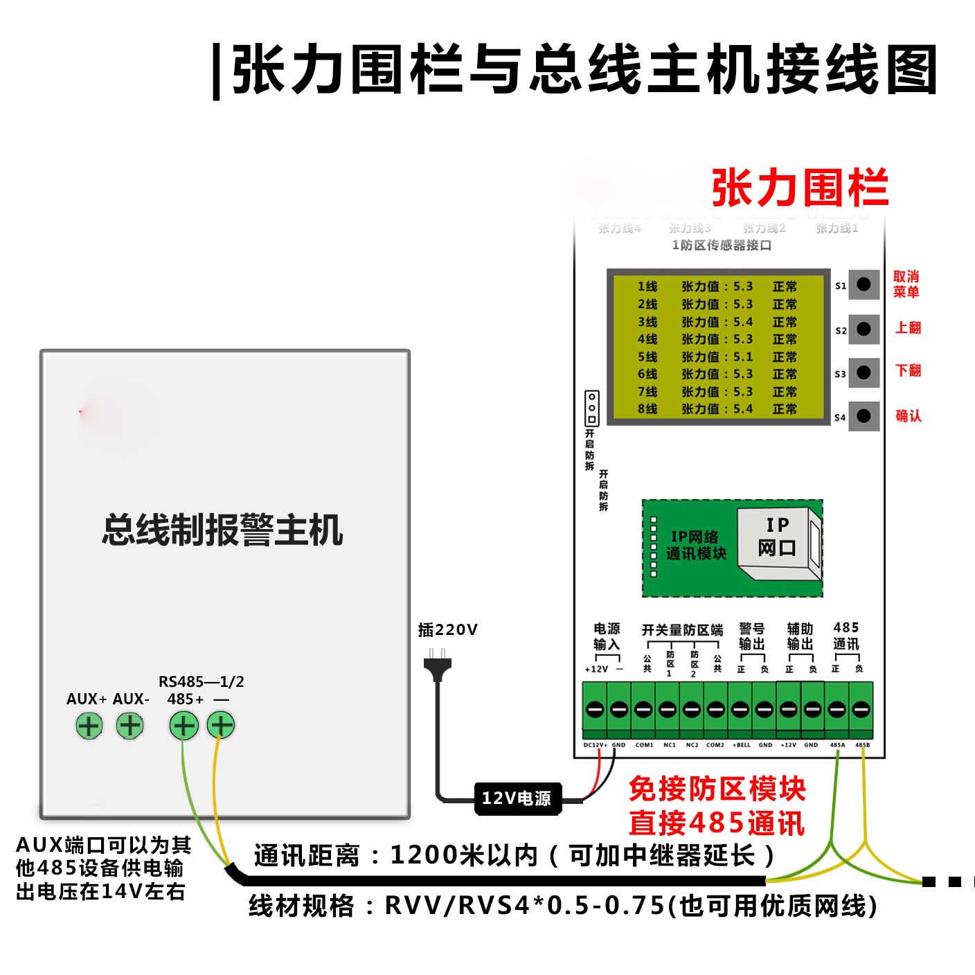 线制多样化:可控制单/双防区,前端围栏分别可接4线、6线、8线